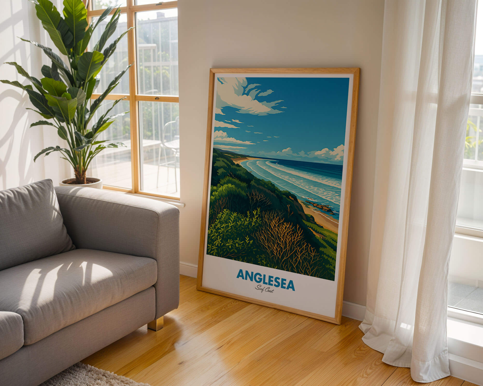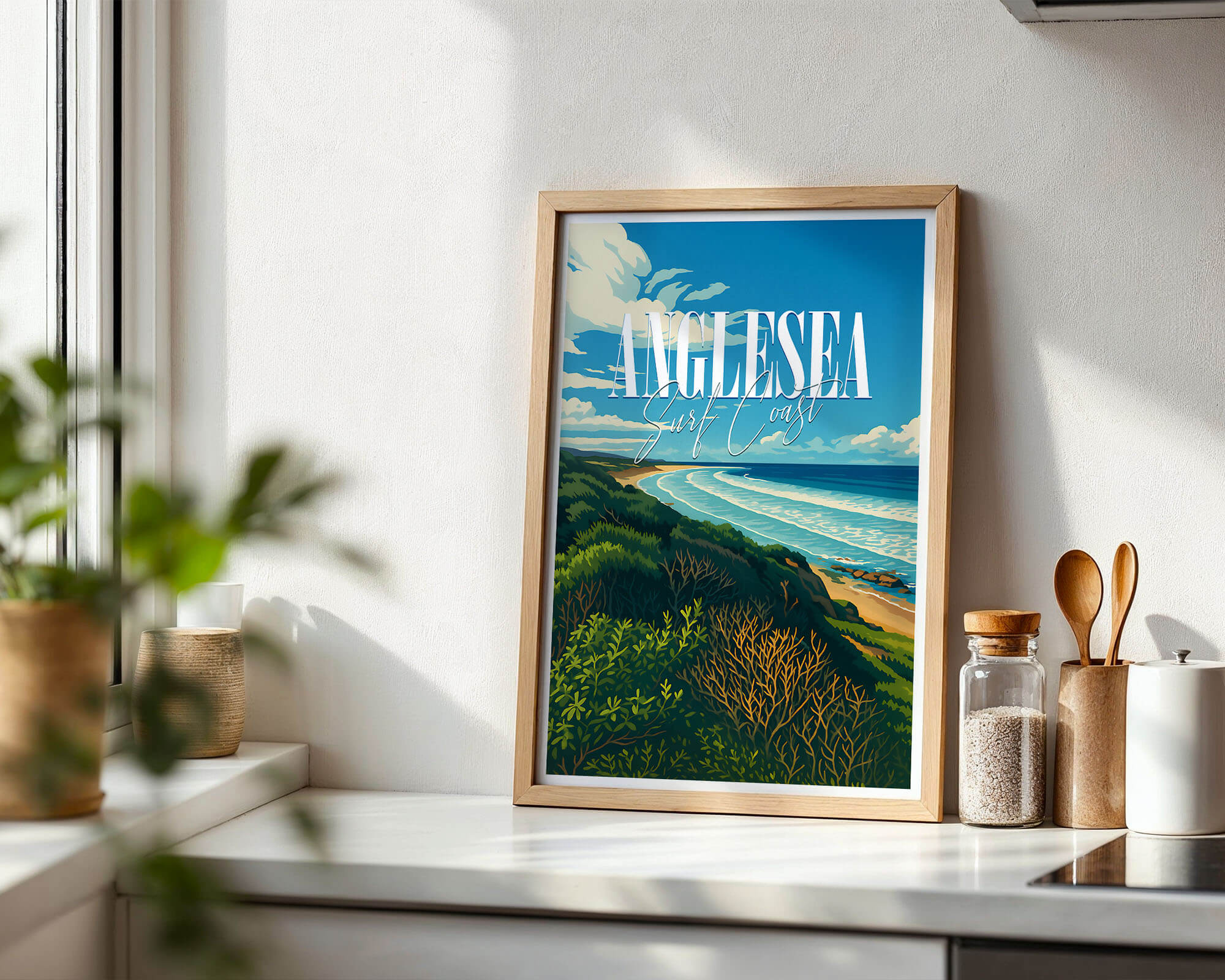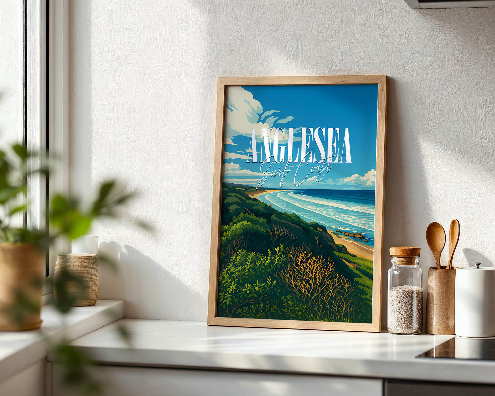 This Anglesea travel poster celebrates the river mouth, coastal heath and sweeping bay of one of the Surf Coast’s favorite towns. The retro illustration style adds warmth and personality while remaining clean and modern. Printed on museum-grade matte art paper with archival pigment inks for excellent longevity. A fresh update for living rooms, hallways or holiday rentals. Designed locally and printed in Australia, available from A4 to A0.