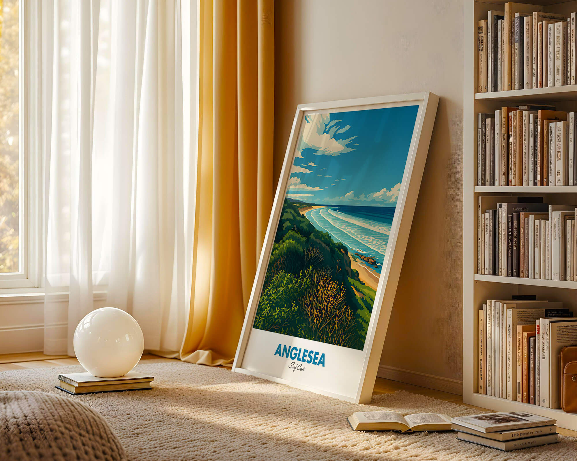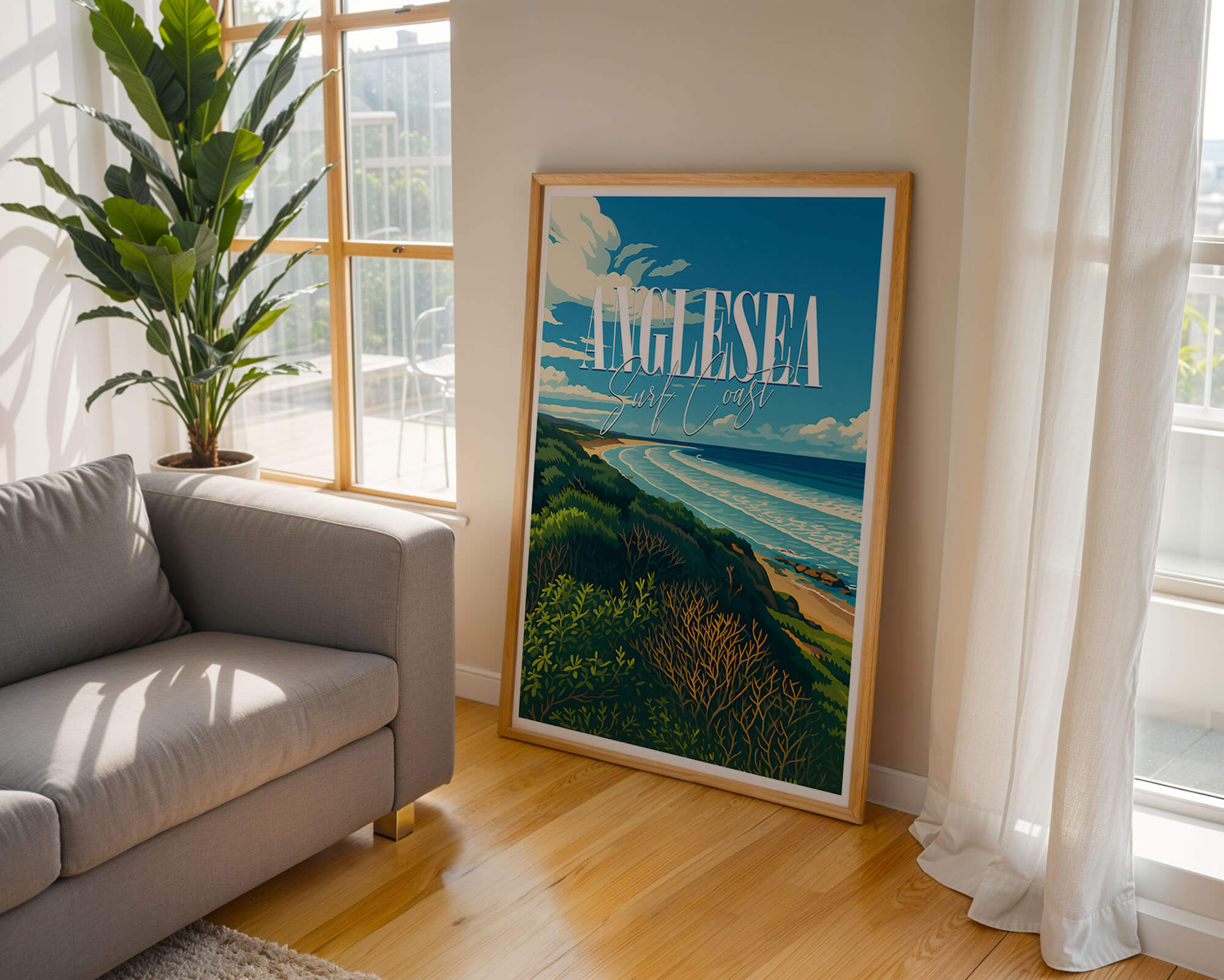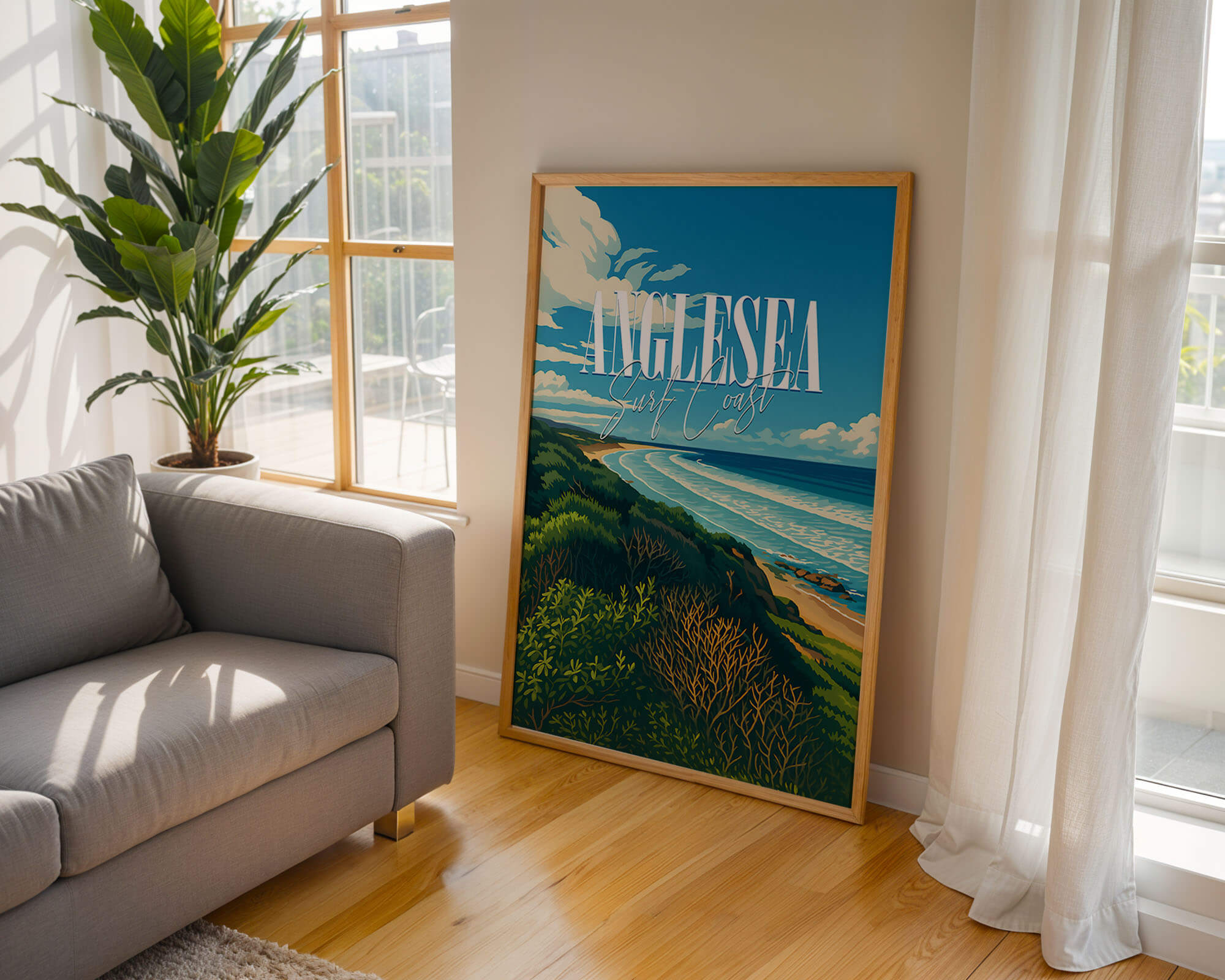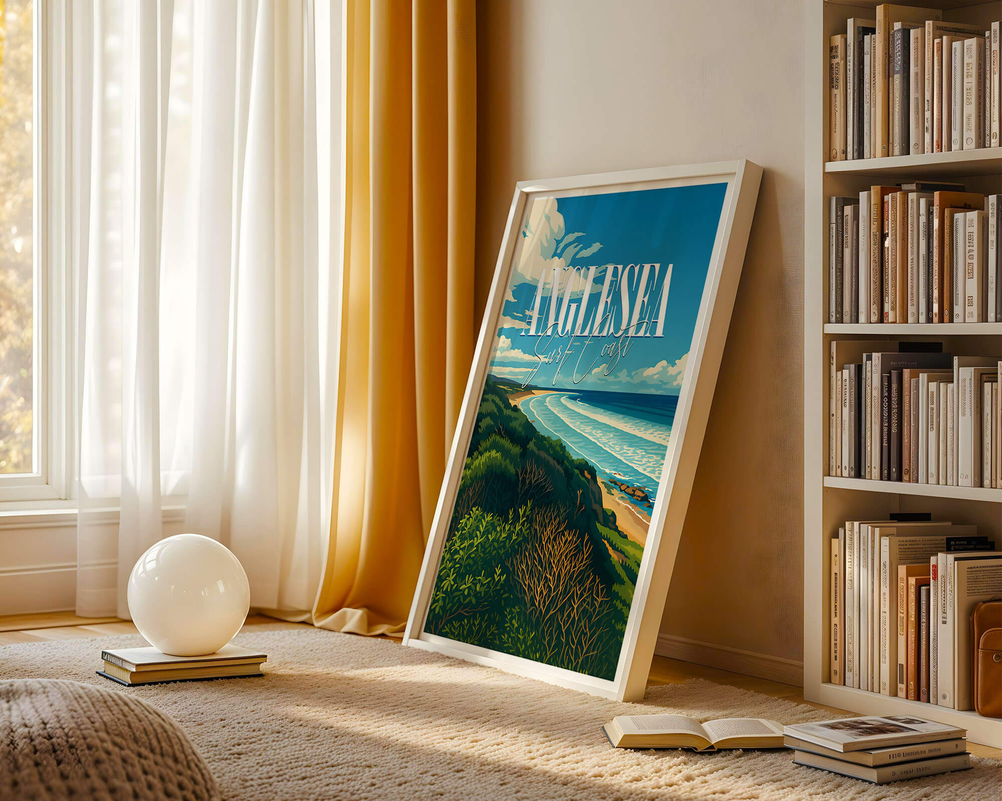 This Anglesea travel poster celebrates the river mouth, coastal heath and sweeping bay of one of the Surf Coast’s favorite towns. The retro illustration style adds warmth and personality while remaining clean and modern. Printed on museum-grade matte art paper with archival pigment inks for excellent longevity. A fresh update for living rooms, hallways or holiday rentals. Designed locally and printed in Australia, available from A4 to A0.