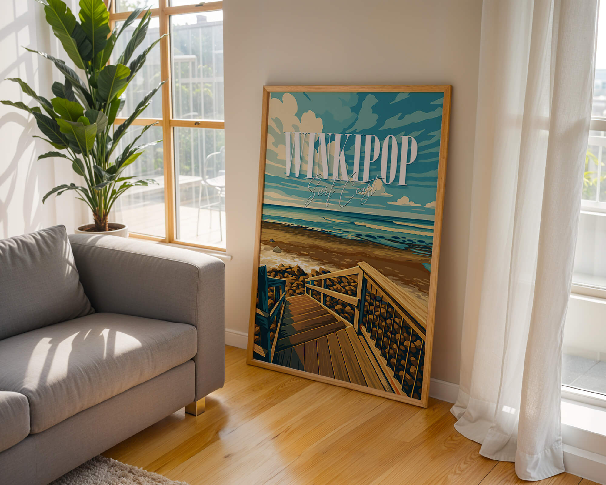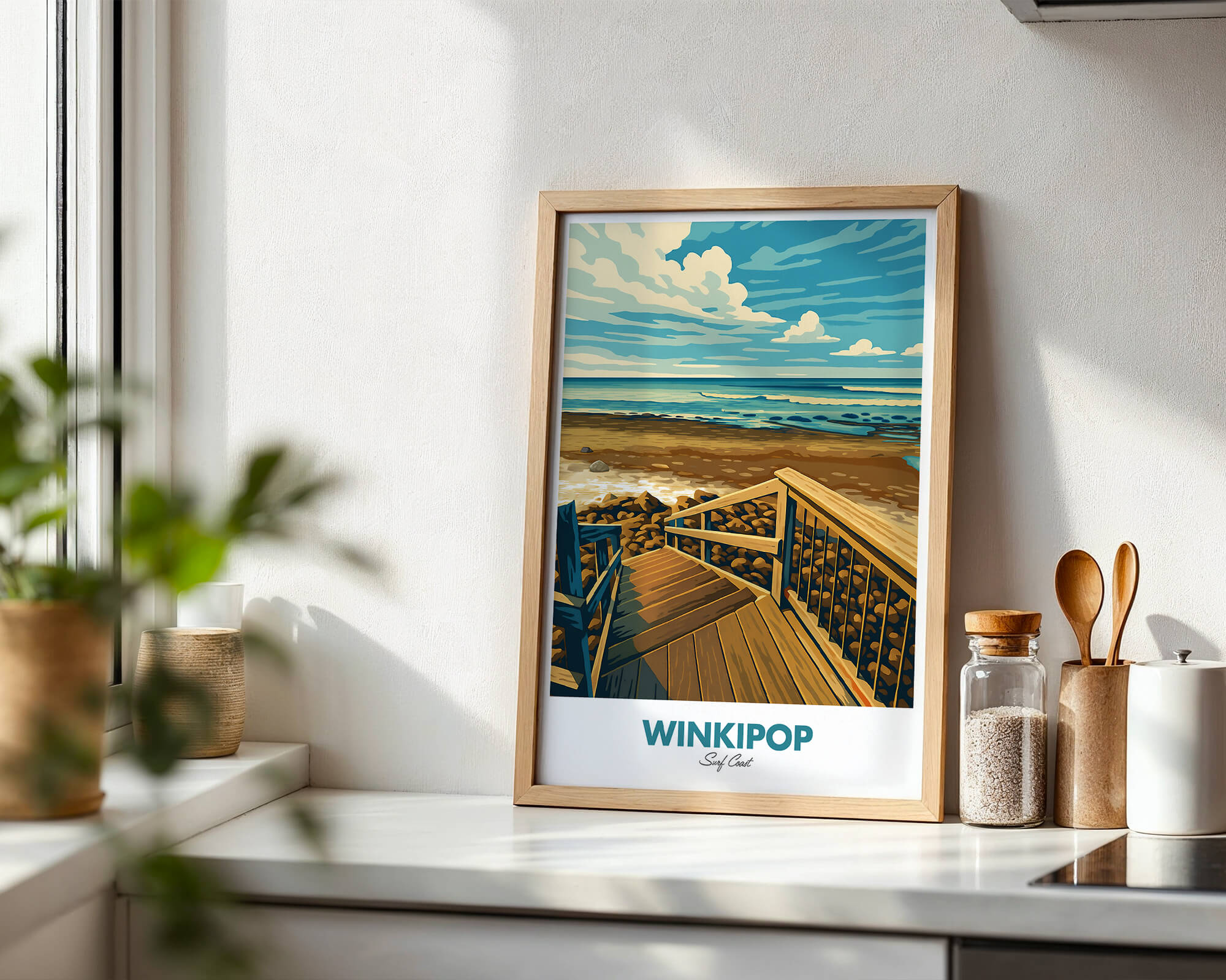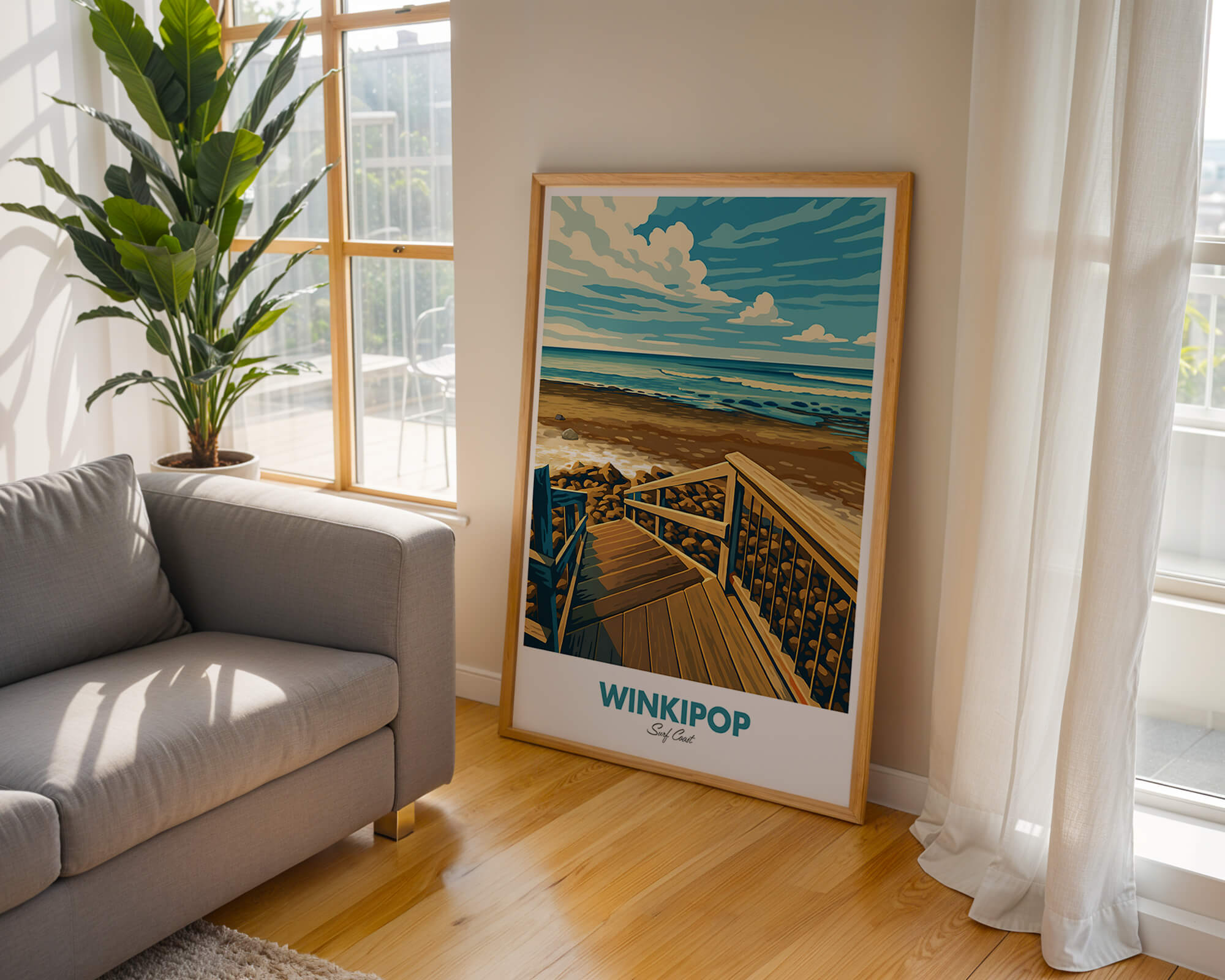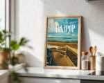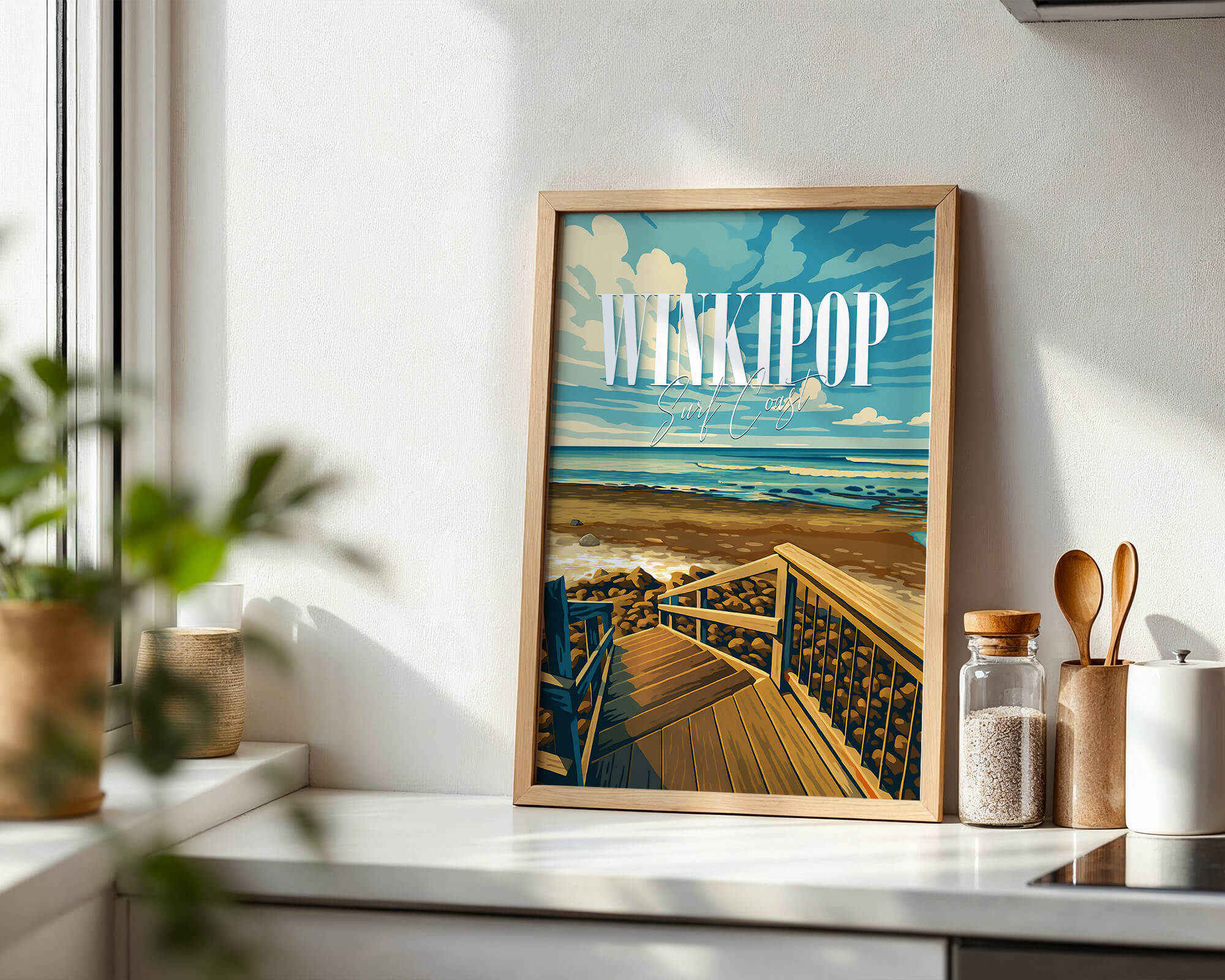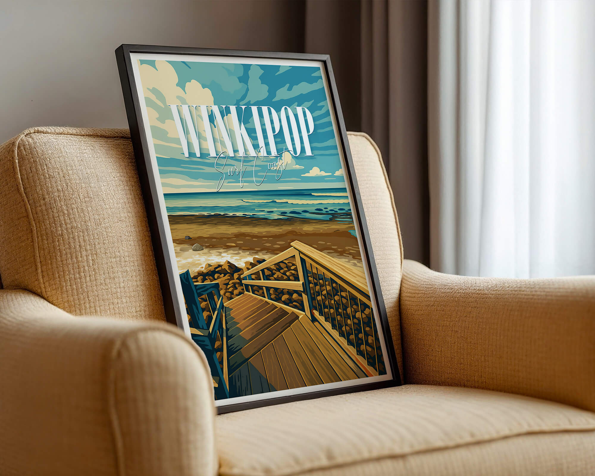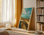 Winkipop is one of Australia’s most storied waves. This vintage travel style poster captures the famous takeoff zone, timber stairs and sweeping reef lines next door to Bells Beach. Rich coastal tones and crisp vector detail make a striking print for surf fans. Produced on museum-grade matte paper with archival inks for longevity. Designed locally on the Surf Coast and printed in Australia. Available in multiple sizes to suit home, studio or office walls.